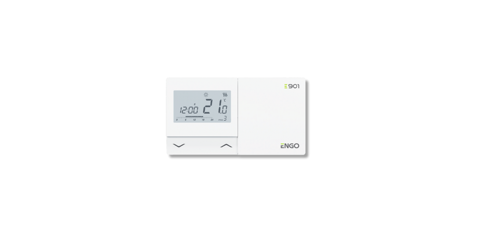 E901 е седмичен, електронен стаен термостат за повърхностен монтаж, предназначен за жично управление на отоплителни или охладителни системи.