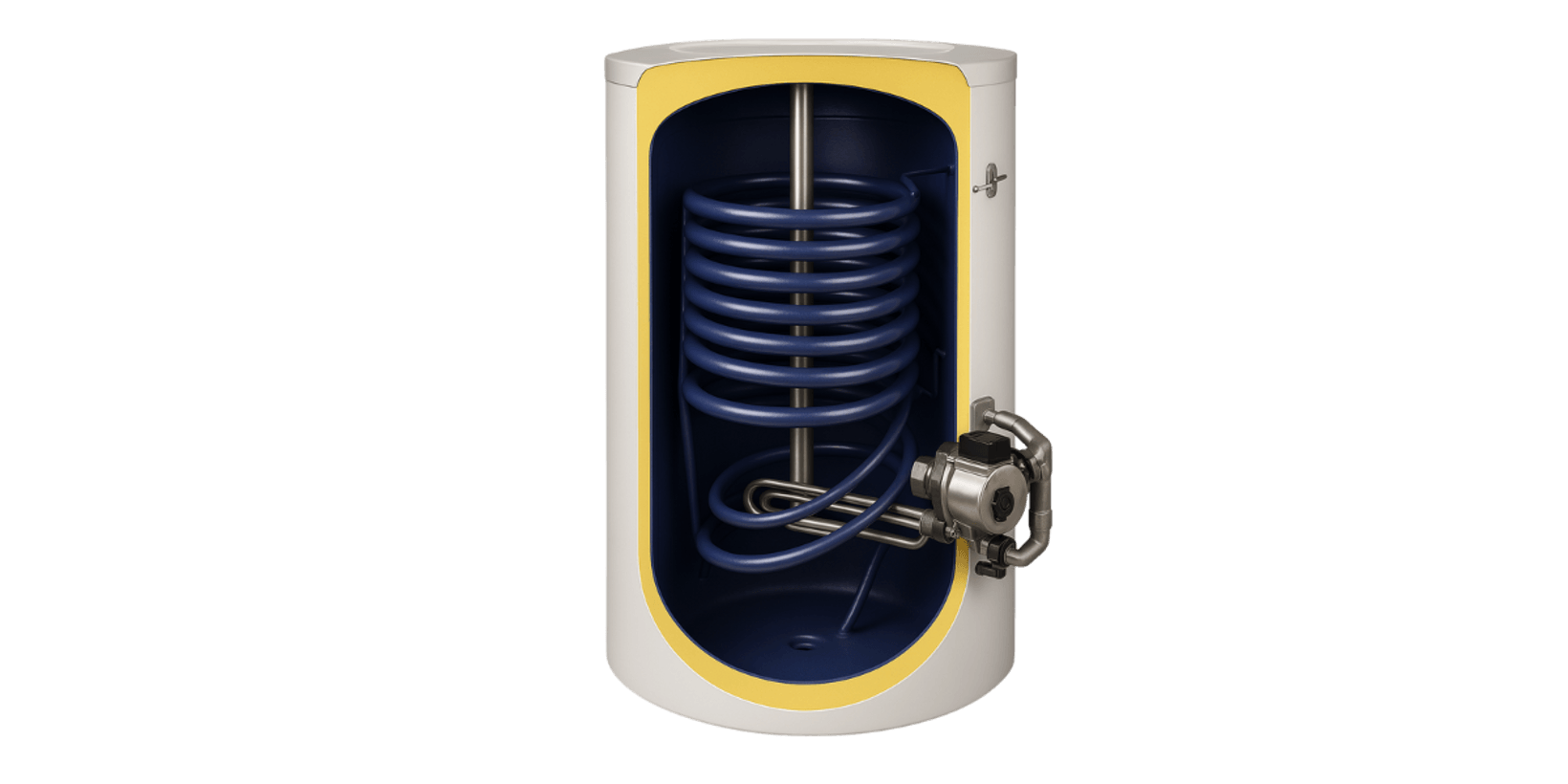 Енергийно ефективни бойлери с една серпентина за дом и бизнес. Обем от 150 до 1000 л. Идеални за слънчеви системи, термопомпи и котли.