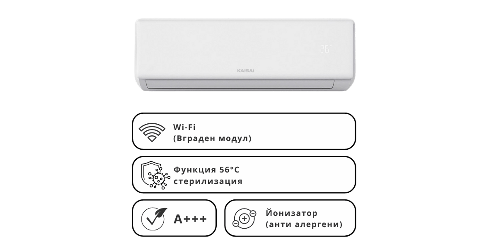 KAISAI Nordic KNP12NRHI/KNP12NRHO е високоефективен стенен инверторен климатик с отопление до -35°C, Wi-Fi управление, 12 000 BTU мощност и екологичен фреон R32. Подходящ за екстремни климатични условия с функции за пречистване и стерилизация на въздуха.
