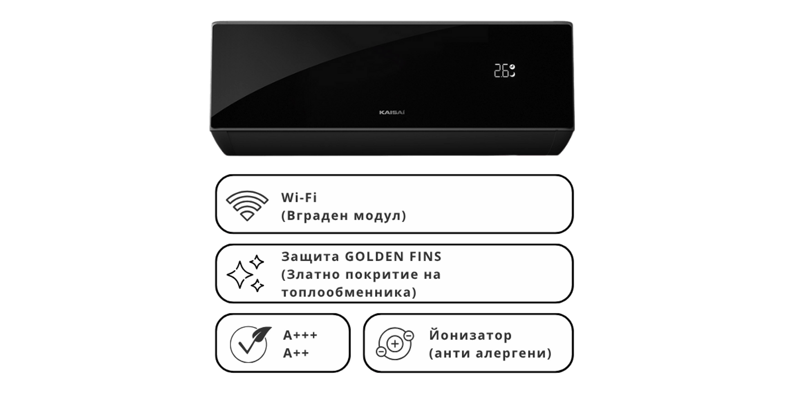 KAISAI PRO HEAT+ (WHITE / BLACK) комбинира стилен дизайн и високотехнологични функции, които го правят идеален избор за отопление, охлаждане и пречистване на въздуха. Предлага се в два модерни цвята – бял и черен, за да подхожда на всеки интериор.