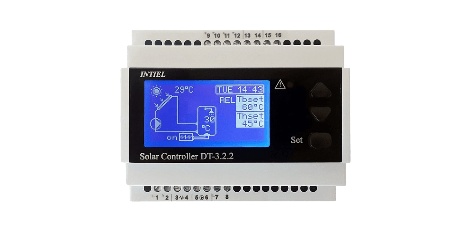 Начало / Продукти / Отопление / Диференциален термостат INTIEL / Управление за слънчеви инсталации / Програмируем контролер за соларни системи DT-3.2.2