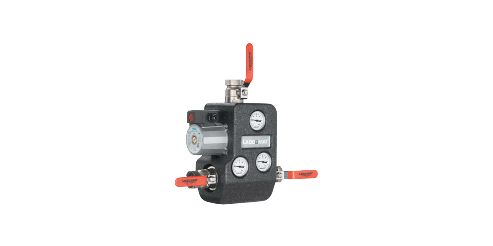 Laddomat е термостатна смесителна група, предназначена за използване в отоплителни системи с буферен съд. Основната ѝ функция е да регулира температурата на връщащата вода към котела, като осигурява: