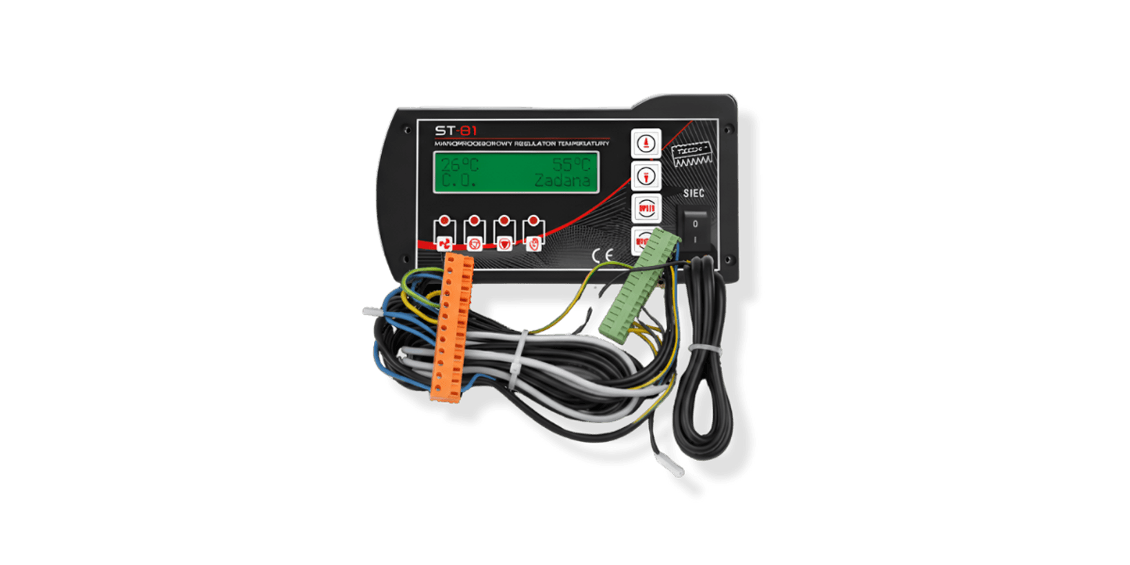 Контролерът ST‑81 е предназначен за автоматизирано управление на котли за централно отопление. Устройството управлява циркулационна помпа, помпа за битова гореща вода (БГВ) и вентилатор, като осигурява стабилна и ефективна работа на отоплителната система.